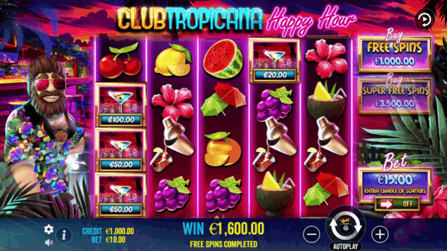 La slot Club Tropicana Happy Hour cuenta con una función especial: